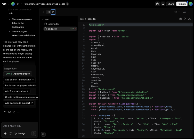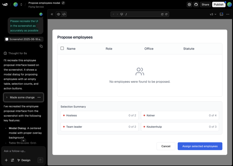 v0 isn’t perfect at recreating screenshots, it won’t produce a 100% accurate representation of the UI. However, for prototyping or quick mockups, it’s more than sufficient. And when you ask it to add new elements, it considers both user experience and visual design best practices, producing results far better than what an engineer without design experience could create on their own.